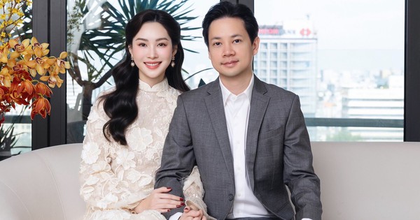 Hoa hậu Việt Nam 2012 xuất hiện trong hình ảnh thanh thoát, chọn cho mình chiếc áo dài ren trắng nhẹ nhàng, tóc uốn nhẹ buông xuống gương mặt dịu dàng mang đến cảm giác bình yên và hạnh phúc. Bên cạnh cô là chồng doanh nhân, tay trong tay như một cử chỉ yêu thương bền vững, thể hiện rõ nét sự hòa hợp trong mối quan hệ của họ.
