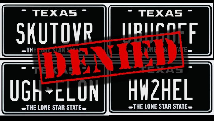 2025 biển số xe cá nhân bị từ chối tại Texas