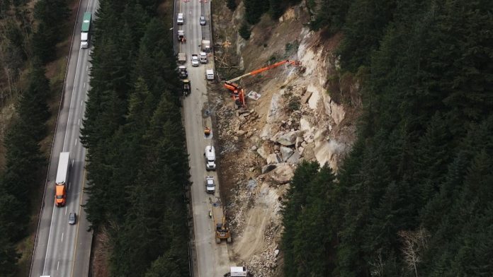 Gần hai tuần sau khi một vụ trượt lở đất khiến một phần của xa lộ liên bang 5 chiều bắc bị đóng gần Bellingham, các đội nhân viên vẫn đang nỗ lực làm việc để ổn định mặt dốc trong khi các tài xế.