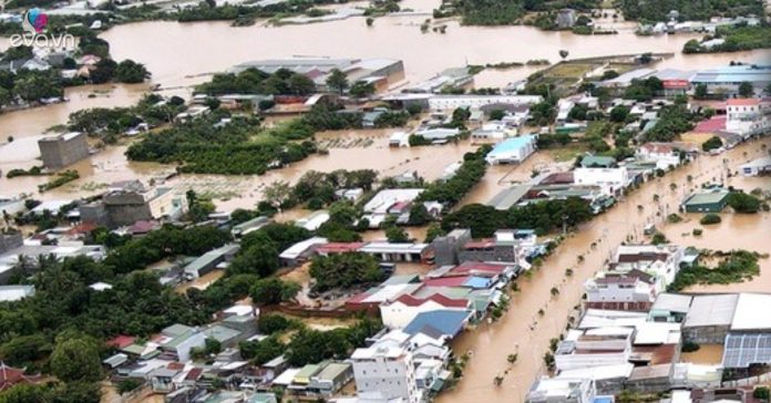 Khu vực hạ du Phan Rang hiện đang chìm sâu trong nước lũ do tình trạng ngập lụt nghiêm trọng trên sông Cái Phan Rang. Mực nước trên sông đã vượt mức báo động cấp 3 và tiếp tục dâng cao một cách khó lường. Nhìn từ trên cao, có thể thấy nhiều vùng rộng lớn ở hạ lưu Phan Rang bị nước lũ bao phủ, nước tràn qua bờ sông, len lỏi vào các khu dân cư, khiến hàng nghìn ngôi nhà và công trình hạ tầng bị ngập sâu [10][9][6].