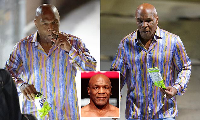 Thèm ăn vặt à, Mike? Huyền thoại quyền anh Tyson hút cần sa và ăn bắp rang trong một buổi tối đi chơi ở Los Angeles.