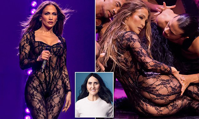 Jennifer Lopez biểu diễn hàng đêm tại Las Vegas trong một bộ đồ liền thân ren đen xuyên thấu, khoe trọn vẻ đẹp gợi cảm và quyến rũ. Bộ trang phục tinh tế này chỉ có một mảnh vải nhỏ hẹp nằm dọc phần hông, mang lại chút kín đáo nhưng vẫn khéo léo tôn lên được những đường nét nóng bỏng của cơ thể cô. Mỗi khi cô di chuyển, dường như mọi ánh mắt đều đổ dồn về phía sân khấu, nơi Lopez không chỉ gây ấn tượng bằng giọng hát mạnh mẽ mà còn bởi phong cách trình diễn đầy tự tin và gợi cảm.